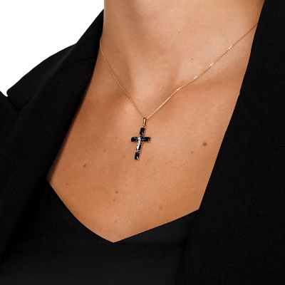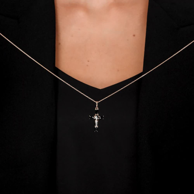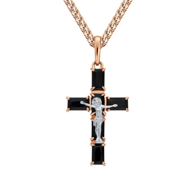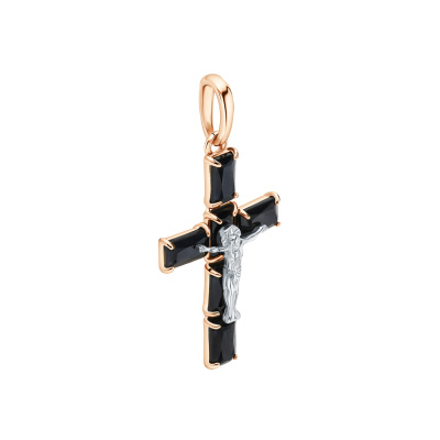 Подвеска с 6 ониксами черными природными; Розовое и белое золото 585 пробы.