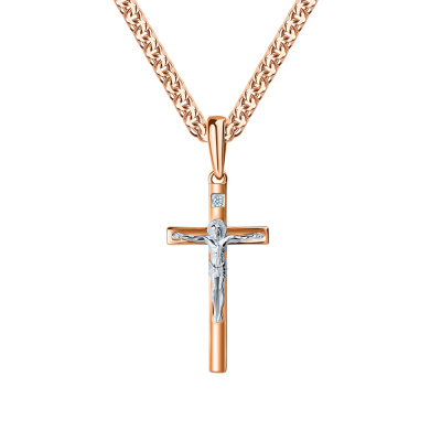 Подвеска с 1 бриллиантом природным, 0.004 карат, огранка круг 17 граней, цвет 2, чистота 2, тип огранки А; Розовое и белое золото 585 пробы.