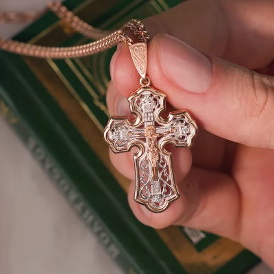 Золотой крестик с бриллиантами природными