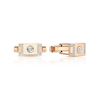Запонки с 2 бриллиантами природными, 0.06 карат, огранка круг 57 граней, цвет 3, чистота 6; 28 бриллиантами природными, 0.11 карат, огранка круг 17 граней, цвет 2, чистота 2; Розовое и белое золото 585 пробы.
