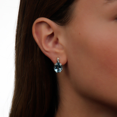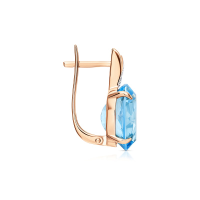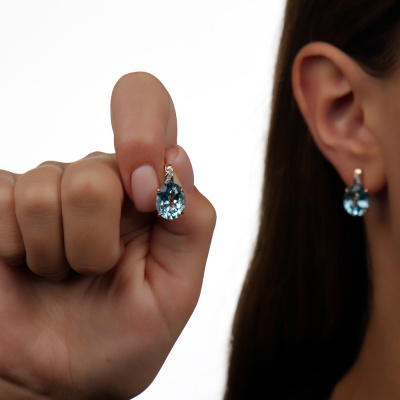 Серьги с 6 бриллиантами природными, 0.04 карат, огранка круг 17 граней, цвет 2, чистота 2, тип огранки А; 2 топазами скай природными, 10.99 карат; Розовое золото 585 пробы.