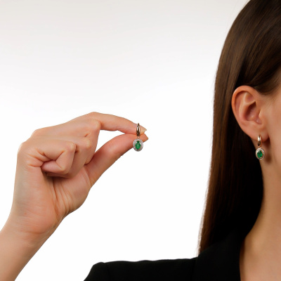 Золотые серьги с бриллиантами природными и изумрудами природными