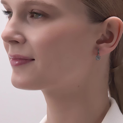 Серьги с 2 бриллиантами природными, 0.09 карат, огранка круг 57 граней, цвет 3, чистота 6, тип огранки А; 32 бриллиантами природными, 0.28 карат, огранка круг 57 граней, цвет 3, чистота 6, тип огранки А; 8 бриллиантами природными, 0.03 карат, огранка круг 57 граней, цвет 3, чистота 6, тип огранки А; Розовое золото 585 пробы.