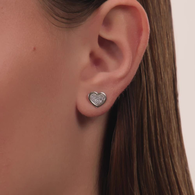 Серьги с 48 бриллиантами природными, 0.13 карат, огранка круг 17 граней, цвет 2, чистота 2, тип огранки А; Белое золото 585 пробы.