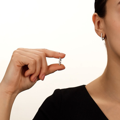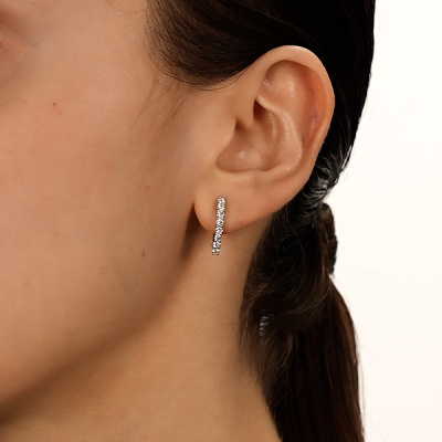Серьги с 16 бриллиантами природными, 0.55 карат, огранка круг 57 граней, цвет 3, чистота 6, тип огранки А; Белое золото 585 пробы.