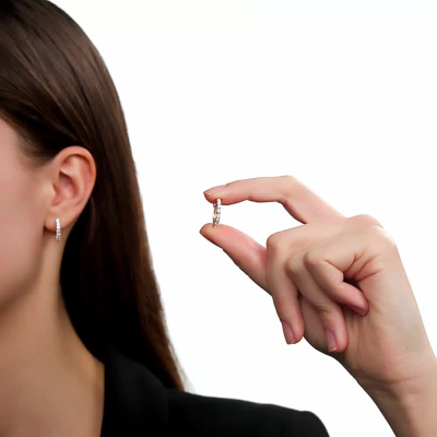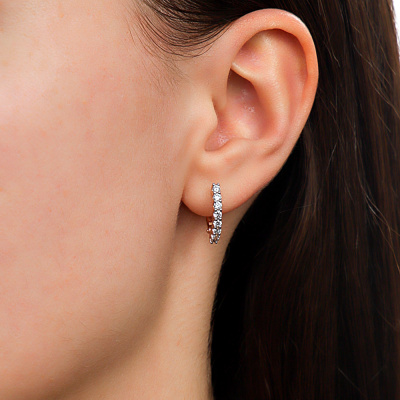 Серьги с 16 бриллиантами природными, 0.55 карат, огранка круг 57 граней, цвет 3, чистота 6, тип огранки А; Розовое золото 585 пробы.
