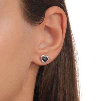 Серьги с 34 бриллиантами природными, 0.15 карат, огранка круг 17 граней, цвет 2, чистота 2, тип огранки А; 2 сапфирами синтетическими, 1.19 карат; Розовое золото 585 пробы.