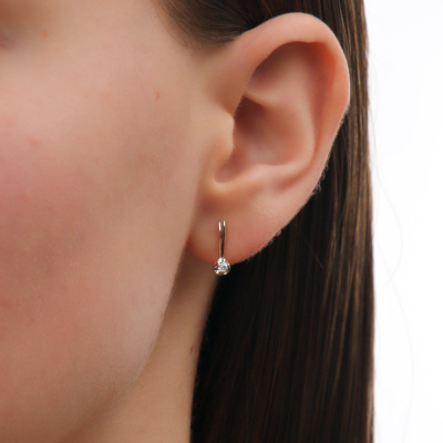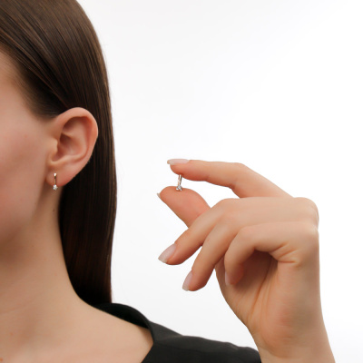 Серьги с 2 бриллиантами природными, 0.08 карат, огранка круг 57 граней, цвет 4, чистота 6, тип огранки А; Розовое золото 585 пробы.