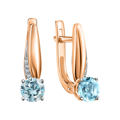 Серьги с 4 бриллиантами природными, 0.01 карат, огранка круг 17 граней, цвет 2, чистота 2, тип огранки А; 4 бриллиантами природными, 0.01 карат, огранка круг 17 граней, цвет 2, чистота 2, тип огранки А; 2 топазами скай природными, 1.18 карат; Розовое золото 585 пробы.
