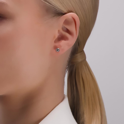 Серьги с 2 бриллиантами природными, 0.81 карат, огранка круг 57 граней, цвет 5, чистота 7, тип огранки А; Розовое золото 585 пробы.