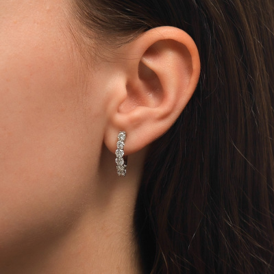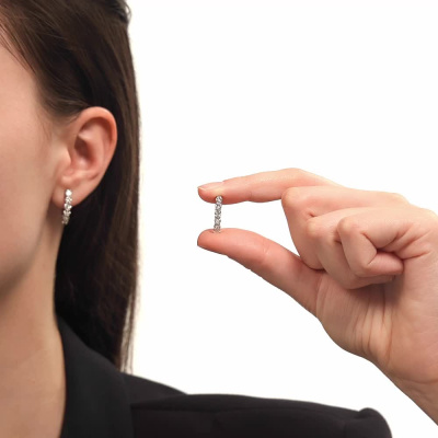 Серьги с 12 бриллиантами природными, 1.52 карат, огранка круг 57 граней, цвет 3, чистота 6, тип огранки А; Белое золото 585 пробы.