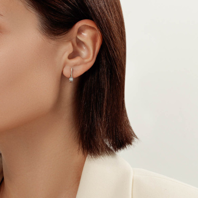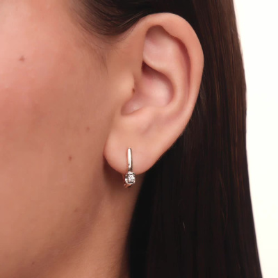 Серьги с 2 бриллиантами природными, 0.12 карат, огранка круг 57 граней, цвет 3, чистота 6, тип огранки А; Розовое и белое золото 585 пробы.