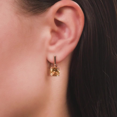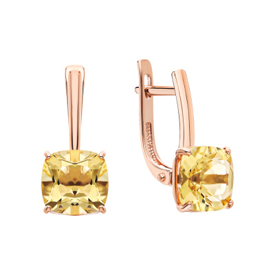 Серьги с 2 цитринами природными, 3.71 карат; Розовое золото 585 пробы.