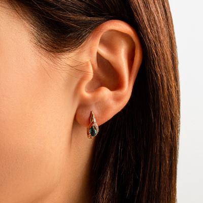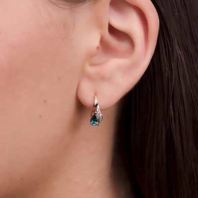 Серьги с 6 бриллиантами природными, 0.05 карат, огранка круг 17 граней, цвет 2, чистота 2, тип огранки А; 2 топазами лондон природными, 0.94 карат; Розовое золото 585 пробы.
