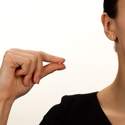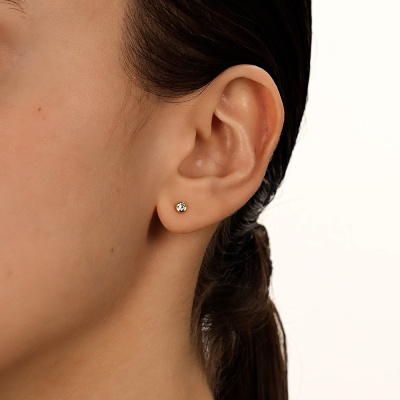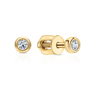 Серьги с 2 бриллиантами природными, 0.11 карат, огранка круг 57 граней, цвет 4, чистота 5, тип огранки А; Желтое золото 585 пробы.