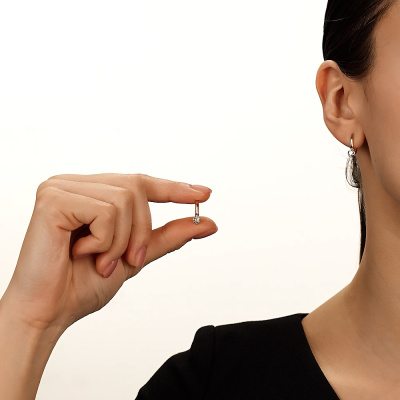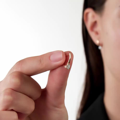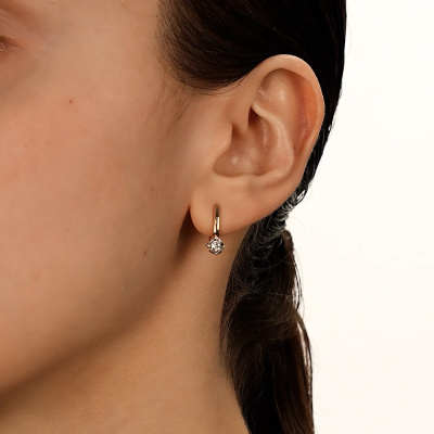 Серьги с 2 бриллиантами природными, 0.15 карат, огранка круг 57 граней, цвет 5, чистота 7, тип огранки А; Розовое золото 585 пробы.