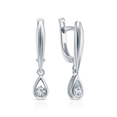 Серьги с 2 бриллиантами природными, 0.15 карат, огранка круг 57 граней, цвет 3, чистота 6, тип огранки А; Белое золото 585 пробы.