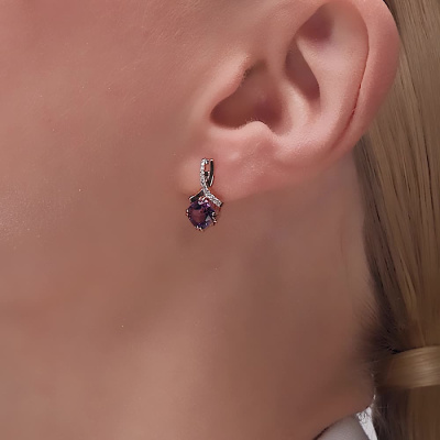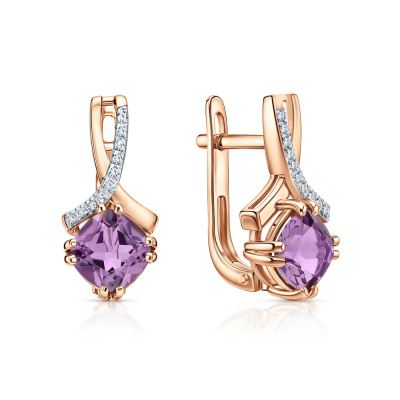 Серьги с 10 бриллиантами природными, 0.04 карат, огранка круг 17 граней, цвет 2, чистота 2, тип огранки А; 4 бриллиантами природными, 0.01 карат, огранка круг 17 граней, цвет 2, чистота 2, тип огранки А; 6 бриллиантами природными, 0.01 карат, огранка круг 17 граней, цвет 2, чистота 2, тип огранки А; 2 аметистами природными, 1.78 карат; Розовое золото 585 пробы.
