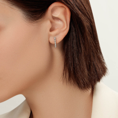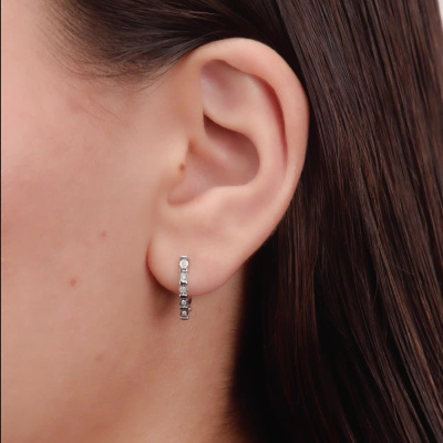 Серьги с 10 бриллиантами природными, 0.04 карат, огранка круг 17 граней, цвет 2, чистота 2, тип огранки А; Белое золото 585 пробы.