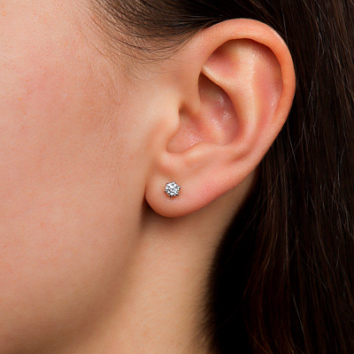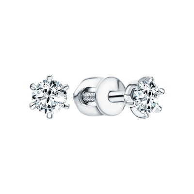 Серьги с 2 бриллиантами природными, 0.31 карат, огранка круг 57 граней, цвет 3, чистота 6, тип огранки А; Белое золото 585 пробы.