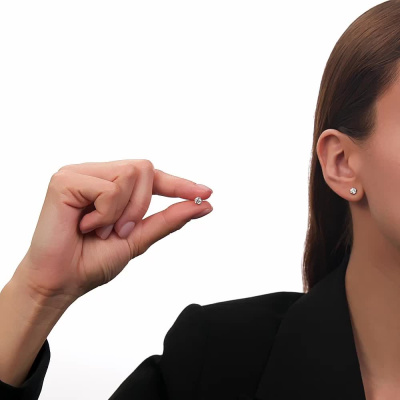 Серьги с 2 бриллиантами природными, 0.62 карат, огранка круг 57 граней, цвет 3, чистота 6, тип огранки А; Белое золото 585 пробы.