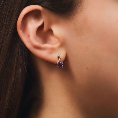 Серьги с 6 бриллиантами природными, 0.01 карат, огранка круг 17 граней, цвет 2, чистота 2, тип огранки А; 2 аметистами природными, 1.44 карат; Розовое золото 585 пробы.