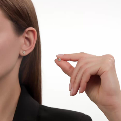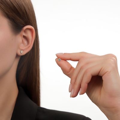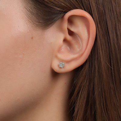 Серьги с 2 бриллиантами природными, 0.09 карат, огранка круг 57 граней, цвет 5, чистота 6, тип огранки А; 12 бриллиантами природными, 0.24 карат, огранка круг 57 граней, цвет 5, чистота 6, тип огранки А; Белое золото 585 пробы.