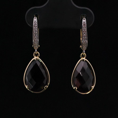 Золотые серьги с бриллиантами природными и кварцами дымчатыми природными