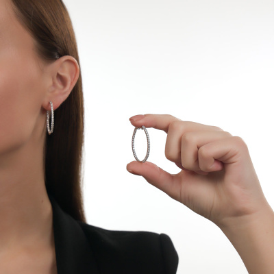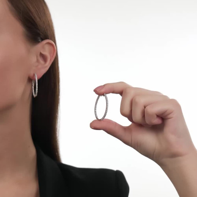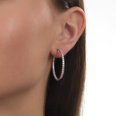 Серьги с 66 бриллиантами природными, 2.05 карат, огранка круг 57 граней, цвет 3, чистота 6, тип огранки А; Белое золото 585 пробы.