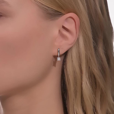 Серьги с 2 бриллиантами природными, 0.81 карат, огранка принцесса 65 граней, цвет 3, чистота 6, тип огранки А; Белое золото 585 пробы.