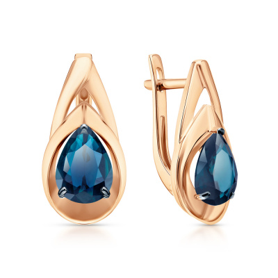 Серьги с 2 топазами лондон природными, 2.42 карат; Розовое золото 585 пробы.