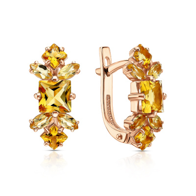 Золотые серьги с цитринами природными