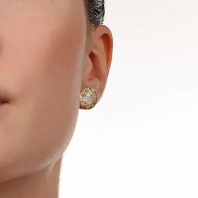 Серьги с 2 перламутровыми мозаиками; Желтое золото 585 пробы.