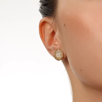 Золотые серьги с перламутром природным
