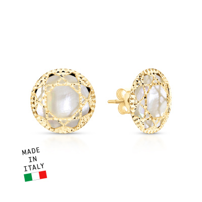 Элегантные серьги выполненные в абсолютно новой итальянской технологии 3D-литье со вставками из натурального мозаичного перламутра прекрасно подойдут для создания как элегантного вечернего образа, так и для повседневной носки. Украшение из золота 585 пробы лимонного оттенка, так популярного в Европе. SUNLIGHT - будьте в тренде!