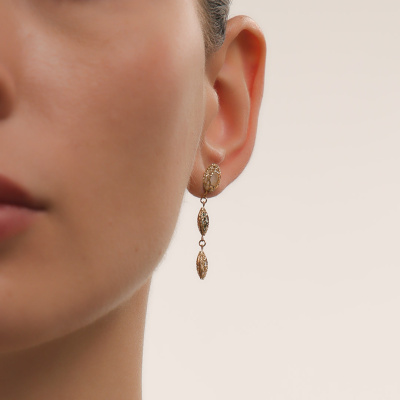 Элегантные серьги выполненные в абсолютно новой итальянской технологии 3D-литье со вставками из натурального перламутра прекрасно подойдут для создания как элегантного вечернего образа, так и для повседневной носки. Украшение из золота 585 пробы лимонного оттенка, так популярного в Европе. SUNLIGHT - будьте в тренде!