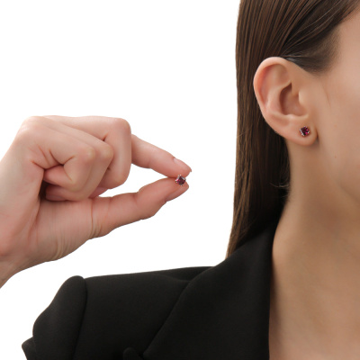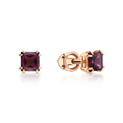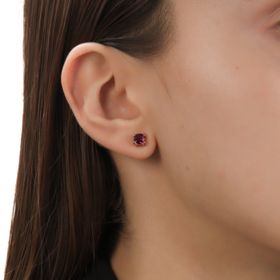 Серьги с 2 родолитами природными, 1.58 карат; Розовое золото 585 пробы.