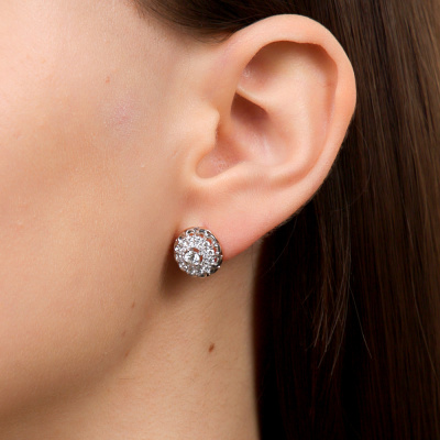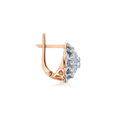 Серьги с 2 бриллиантами природными, 0.32 карат, огранка круг 57 граней, цвет 3, чистота 6, тип огранки А; 24 бриллиантами природными, 0.54 карат, огранка круг 57 граней, цвет 3, чистота 6, тип огранки А; 32 бриллиантами природными, 0.12 карат, огранка круг 57 граней, цвет 3, чистота 6, тип огранки А; Розовое и белое золото 585 пробы.