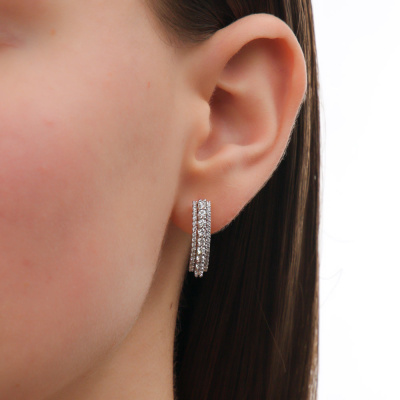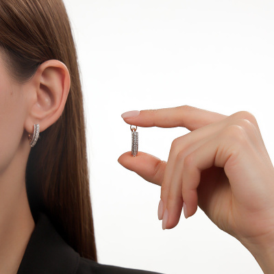 Серьги с 18 бриллиантами природными, 0.57 карат, огранка круг 57 граней, цвет 3, чистота 6, тип огранки А; 60 бриллиантами природными, 0.32 карат, огранка круг 57 граней, цвет 3, чистота 6, тип огранки А; Розовое золото 585 пробы.