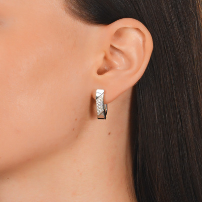 Серьги с 24 бриллиантами природными, 0.21 карат, огранка круг 57 граней, цвет 4, чистота 5, тип огранки А; 52 бриллиантами природными, 0.15 карат, огранка круг 57 граней, цвет 4, чистота 5, тип огранки А; Белое золото 585 пробы.