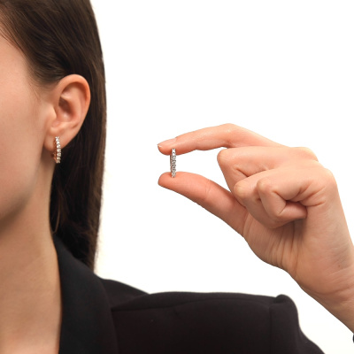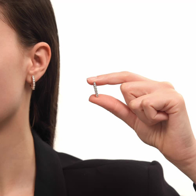 Серьги с 6 бриллиантами природными, 0.31 карат, огранка круг 57 граней, цвет 3, чистота 6, тип огранки А; 8 бриллиантами природными, 0.25 карат, огранка круг 57 граней, цвет 3, чистота 6, тип огранки А; Розовое золото 585 пробы.