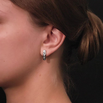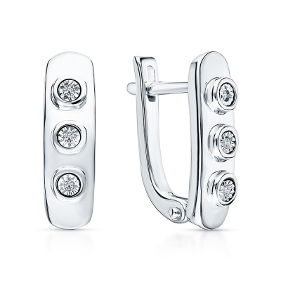 Серьги с 6 бриллиантами природными, 0.02 карат, огранка круг 17 граней, цвет 2, чистота 4, тип огранки Б; Серебро 925 пробы.