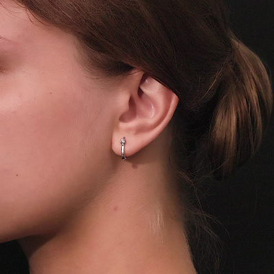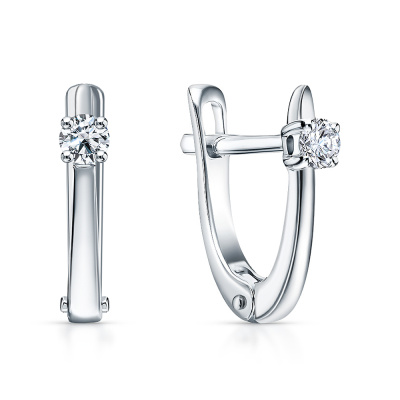Серьги с 2 бриллиантами выращенными, 0.12 карат, огранка круг 57 граней, цвет 3, чистота 5; Серебро 925 пробы.