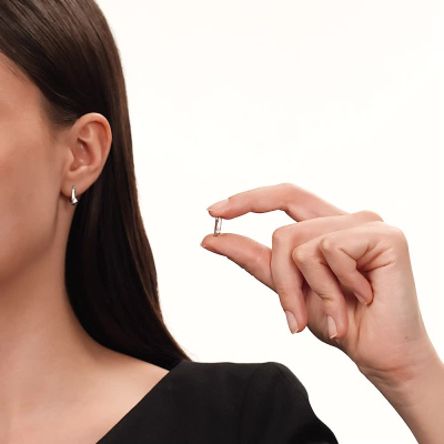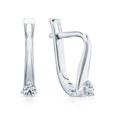 Серьги с 2 бриллиантами выращенными, 0.13 карат, огранка круг 57 граней, цвет 3, чистота 5; Серебро 925 пробы.