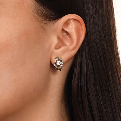 Серьги с 2 бриллиантами природными, 0.05 карат, огранка круг 57 граней, цвет 3, чистота 6, тип огранки А; 12 бриллиантами природными, 0.15 карат, огранка круг 57 граней, цвет 3, чистота 6, тип огранки А; 44 бриллиантами природными, 0.1 карат, огранка круг 57 граней, цвет 3, чистота 6, тип огранки А; Желтое и белое золото 585 пробы.