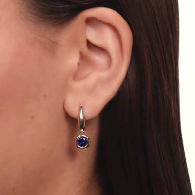 Серьги с 2 сапфирами синтетическими, 2 карат; Розовое золото 585 пробы.