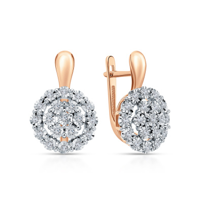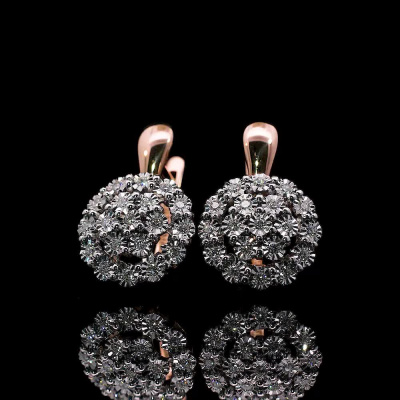 Серьги с 38 бриллиантами природными, 0.32 карат, огранка круг 57 граней, цвет 3, чистота 6; Розовое и белое золото 585 пробы.