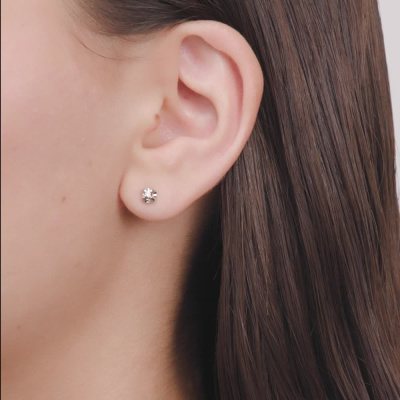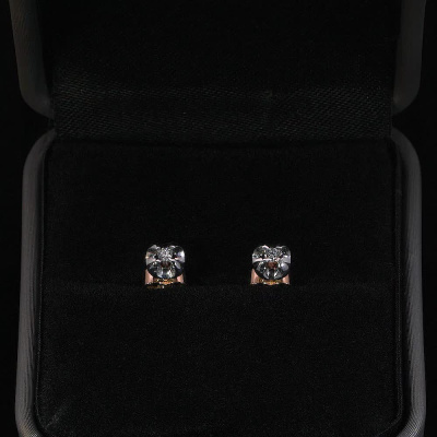Серьги с 2 бриллиантами природными, 0.04 карат, огранка круг 57 граней, цвет 3, чистота 6, тип огранки А; Розовое золото 585 пробы.