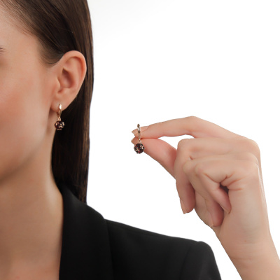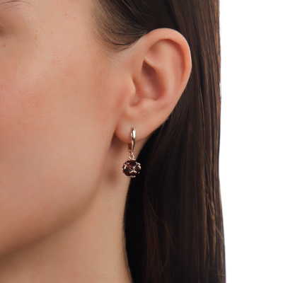 Серьги с 12 гранатами природными, 7 карат; Розовое золото 585 пробы.