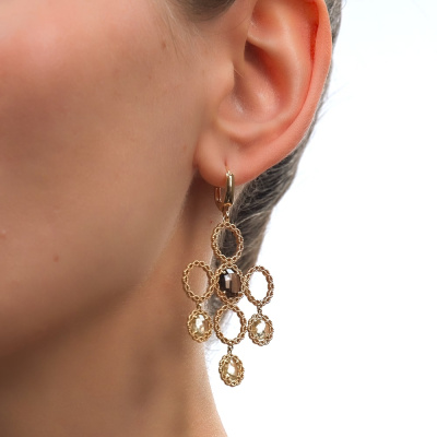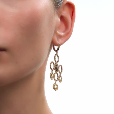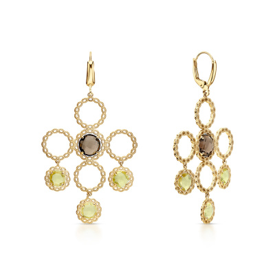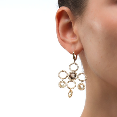 Роскошь, которая поражает воображение. Серьги из жёлтого золота 585 пробы со вставками из дымчатого и лимонного кварца выполнены лучшими итальянскими ювелирами. Стильный дизайн не оставит ни одну покупательницу равнодушной. Италия славится своим высоким ювелирным искусством. В коллекции Золото Италии Вы найдете необычные, стильные, шикарные украшения выполненные в современных технологиях.